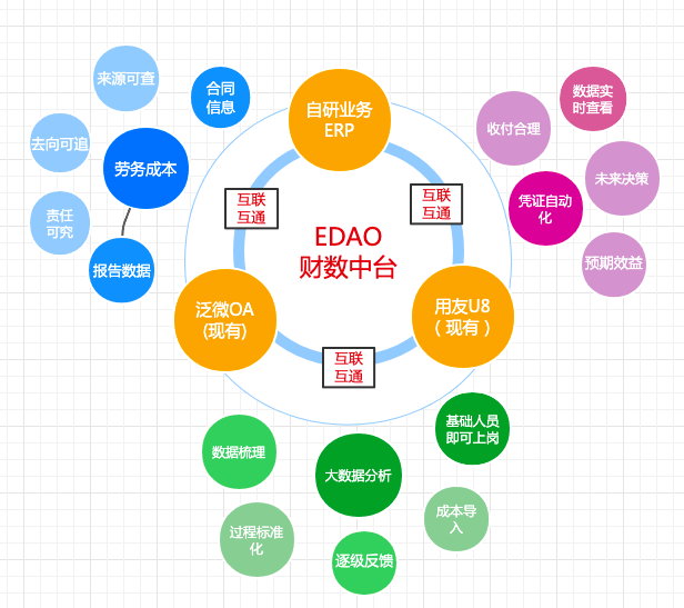 一个企业拥有财数中台,即拥有了企业所有的数据,为整个集团以及分子公司的各个业务和财务做数据服务, 最终为企业提效降本,让数据准确,让业务自动化,让人才做对的事情,让企业更有生命力去支撑未来的企业发展。